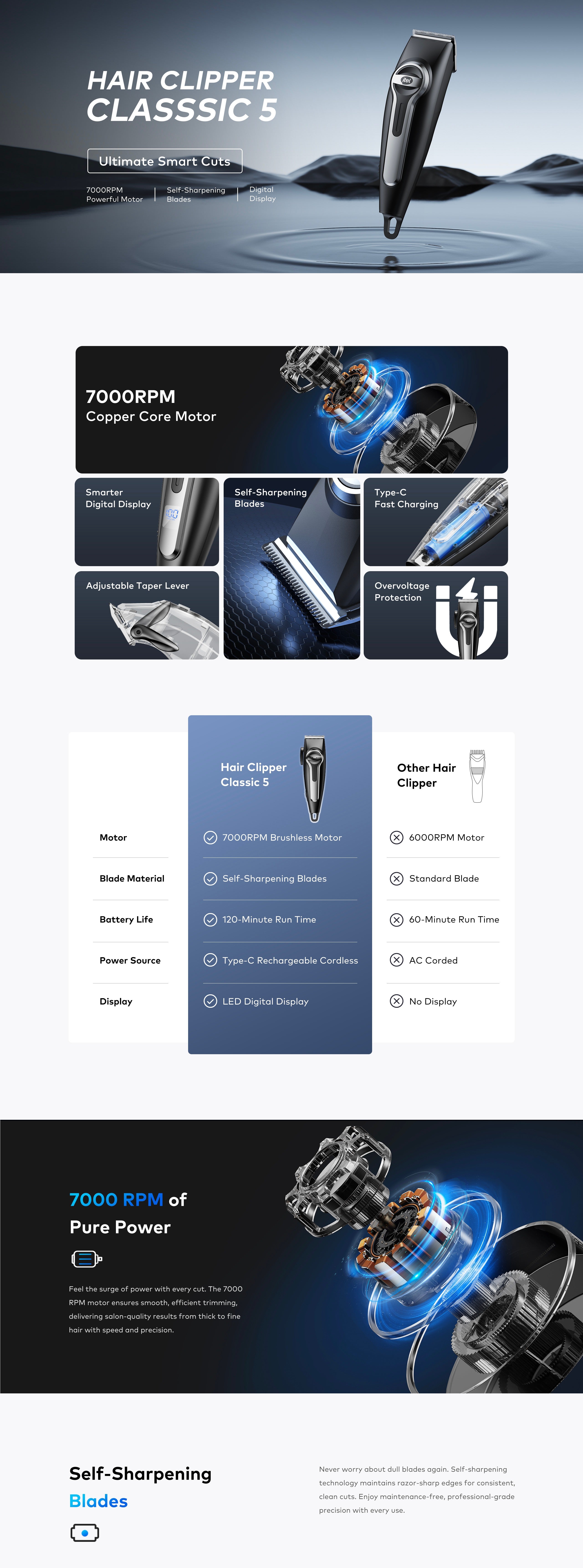 Motor Speed 7000 RPM ultra-powerful motor