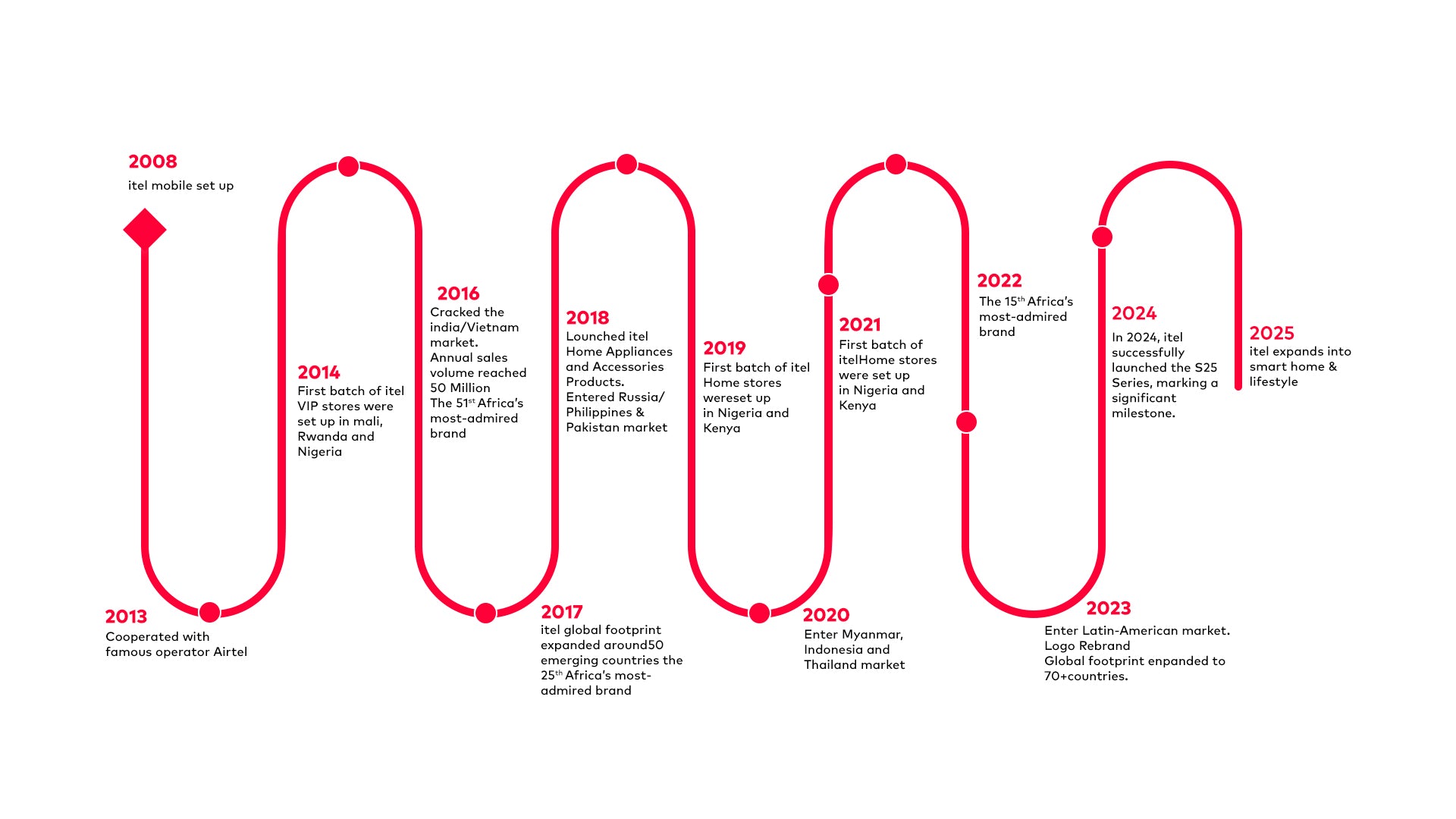 Established over 15 years, itel is a reliable smart life brand for everyone. Adopting “Enjoy Better Life” as its brand philosophy, itel’s mission is to provide budget-friendly consumer electronic products and lifestyle products to everyone. It democratises technology by giving entry to technology and connectedness to consumers without prior access to it. After more than 15 years’ development, itel has expanded its presence in more than 70 emerging markets globally. itel has a product portfolio of smartphones, TV, accessories, electrics, home appliances and lifestyle products.