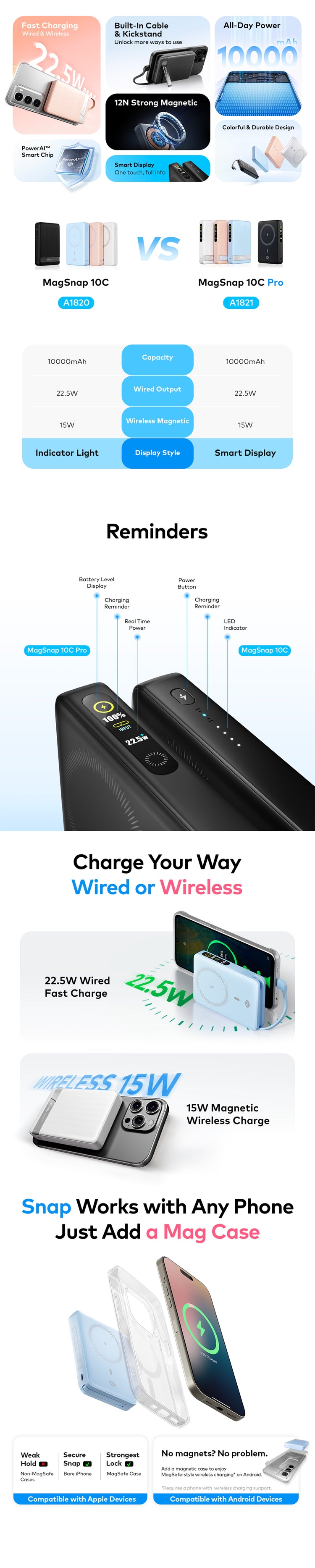 - Built-in Type-C Cable: Supports both Type-C input & output for easy charging